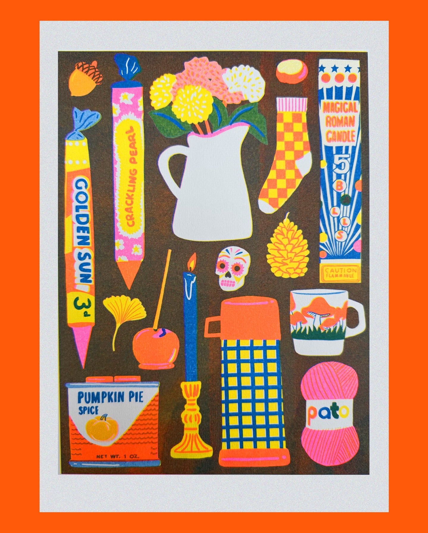 Risograph prints can vary from print to print in terms of colour depth and texture, this makes each one unique!